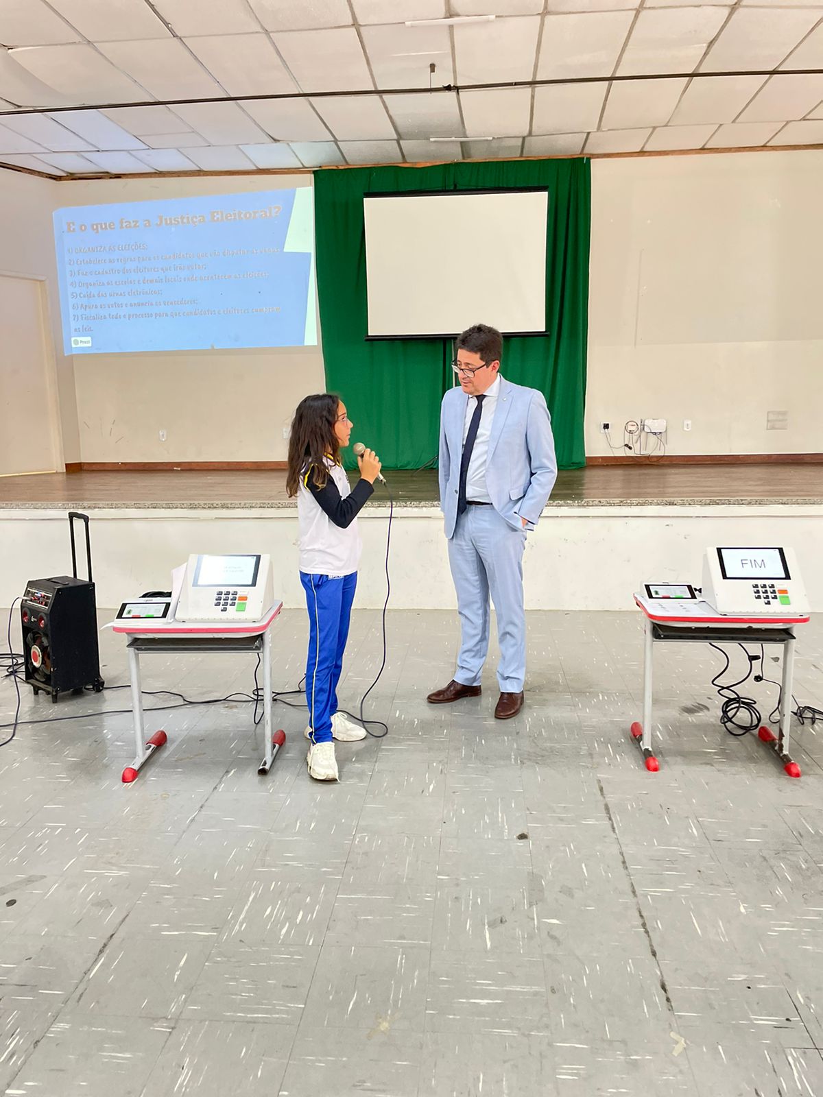 O TRE-ES foi representado pelo Juiz Eleitoral da 10ª Zona - Ibatiba e Brejetuba, Akel de Andrade Lima, que conversou com os estudantes durante boa parte da manhã sobre o trabalho da Justiça Eleitoral e apresentou como funciona a Urna Eletrônica, além de responder as dúvidas dos presentes. A diretora da unidade, Ulda Rosa Queiroz de Freitas; e o secretário executivo da Escola Judiciária Eleitoral (EJE-ES), Vinícius Quintino de Oliveira, acompanharam todo o encontro. O Projeto "Fiscal Mirim da Justiça Eleitoral é destinado às crianças matriculadas até o 5º ano do ensino fundamental.
