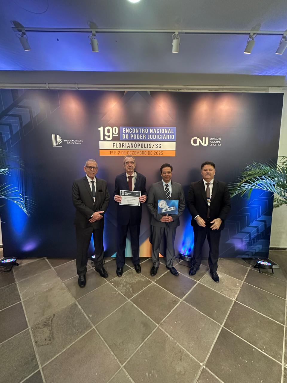 O anúncio aconteceu nesta terça-feira (02), durante 19º Encontro Nacional do Poder Judiciário, realizado em Florianópolis, Santa Catarina. Receberam a premiação o presidente do TRE-ES, desembargador Dair José Bregunce de Oliveira; o diretor-geral do Tribunal, Alvimar Dias Nascimento; o juiz auxiliar da Presidência, Rogério Rodrigues de Almeida e o chefe de gabinete da Presidência, Claudio Humberto Viana Gomes.