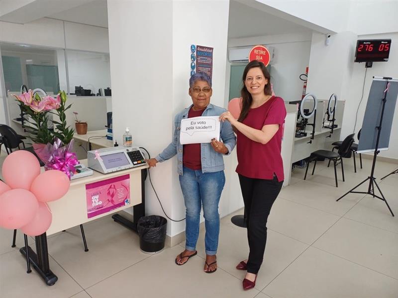 O cartório foi cuidadosamente decorado pelos servidores com cartazes e elementos temáticos, com o intuito de sensibilizar as eleitoras que compareceram ao local sobre a importância do cuidado com a saúde.